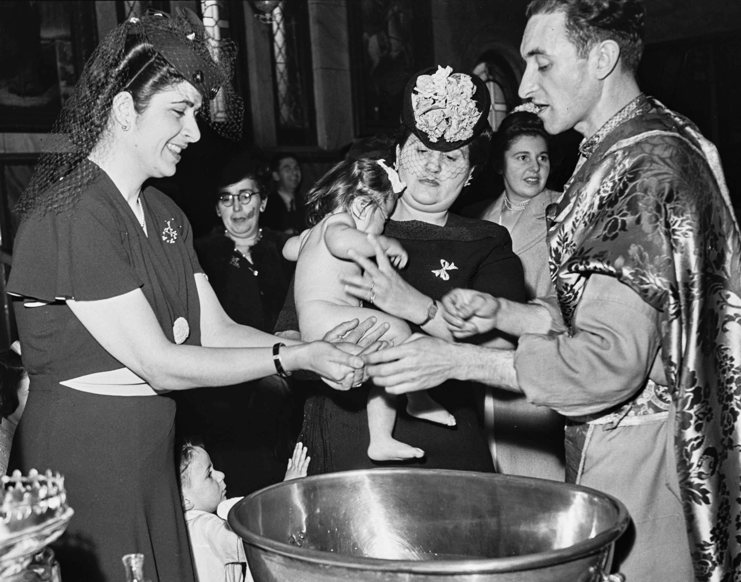 Alexandra Cassimati’s baptism, photographed by Ivan Ive, as it appeared in PIX in September 1946. State Library of NSW