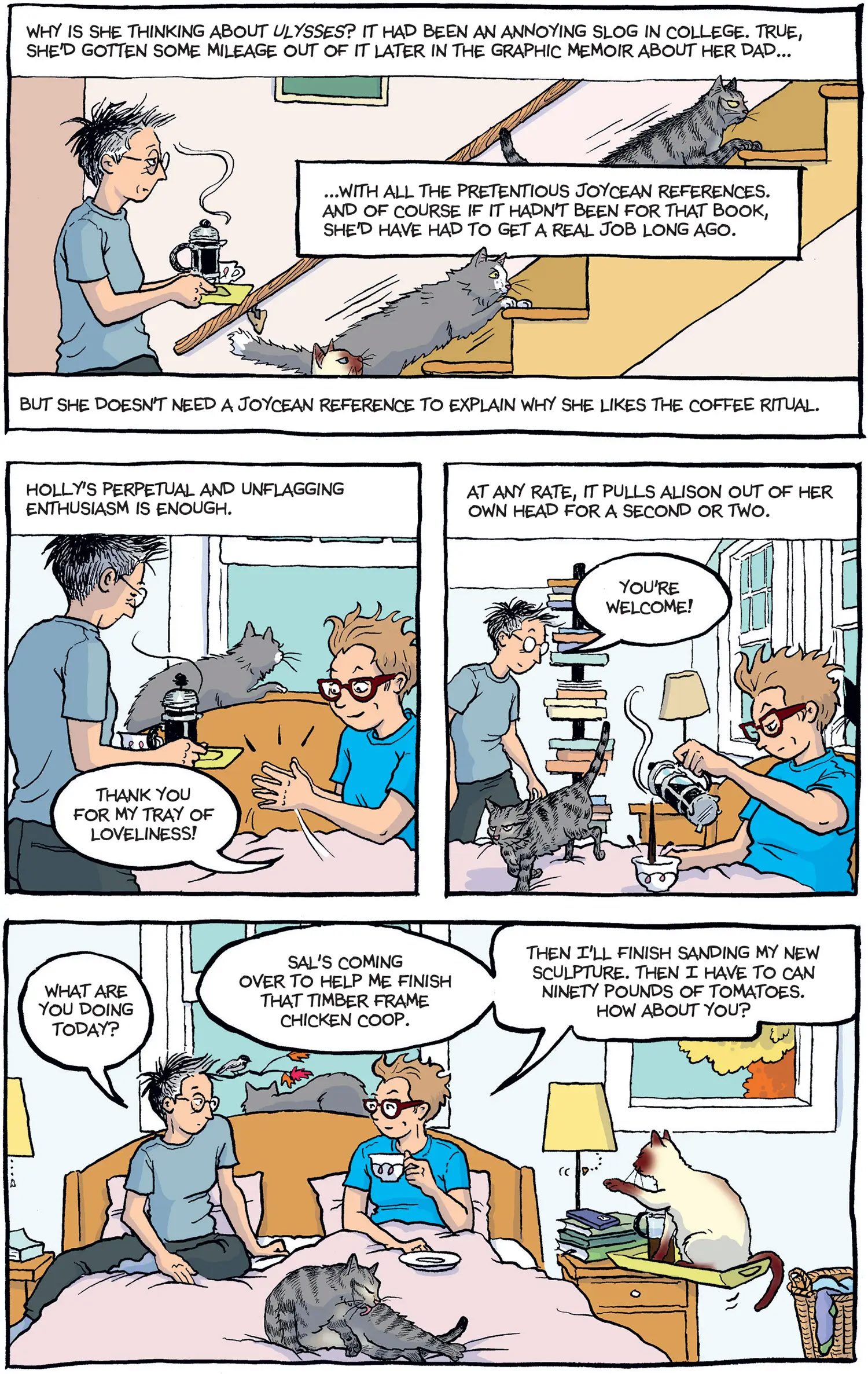 It is a paradoxical tribute to Bechdel that as one reads on, all these conventions, the pictorial ground of the text, tend to fade away, become transparent, not noticed, as one is drawn into the story being told.